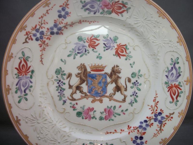A set of 10 elegant Armorial Plates by Sampson, hand-painted in enamel colours under-glaze red factory marks, French, c. 1870-90. Measures:9 ¾”diam Ref No. A3758 Price: $2,400