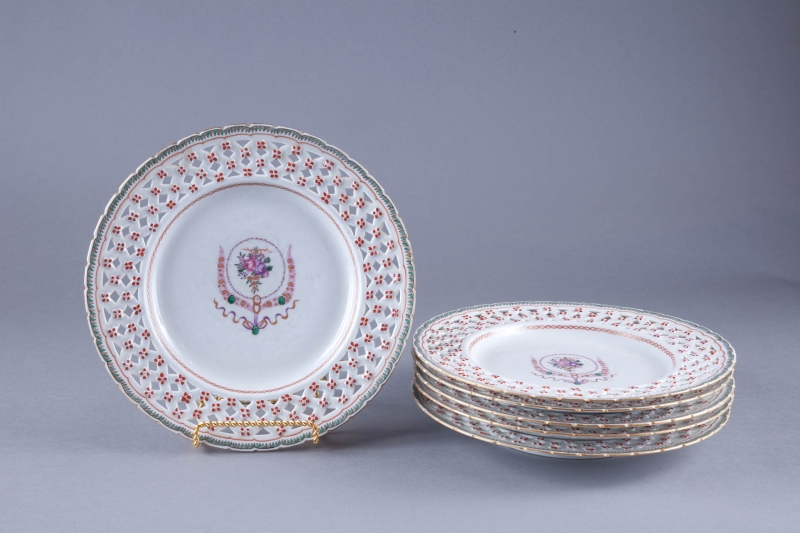Lovely set of six reticulated Sampson hand painted salad or dessert plates.